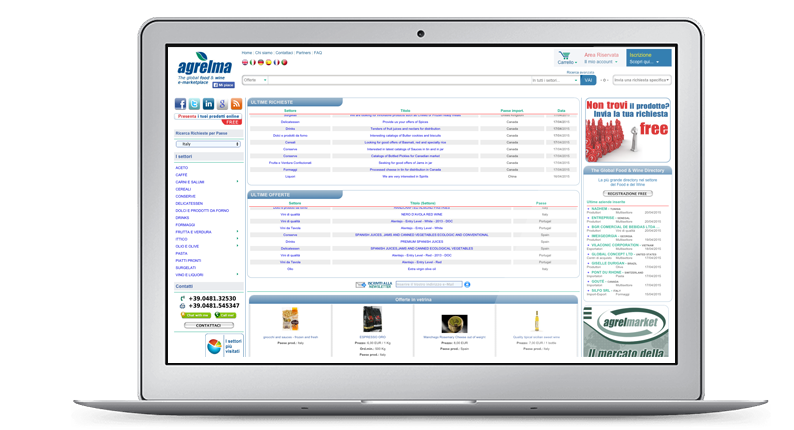 Sito web per Agrelma, E-MARKETPLACE internazionale del settore agroalimentare e del vino più diffuso nel mondo; SERVIZI e TECNOLOGIE per gli operatori dell’agroalimentare e del vino; BANCA DATI dove ogni giorno è possibile realizzare contatti con importatori di tutto il mondo. Il sito è presente all’indirizzo www.agrelma.com