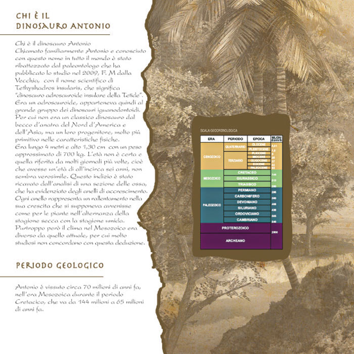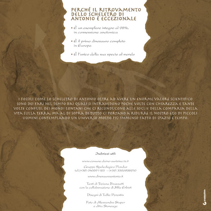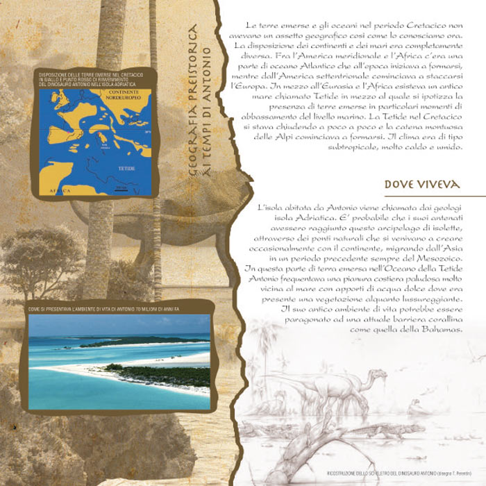 Brochure informativa del sito Paleontologico del dinosauro Antonio.